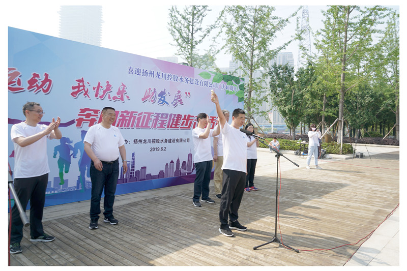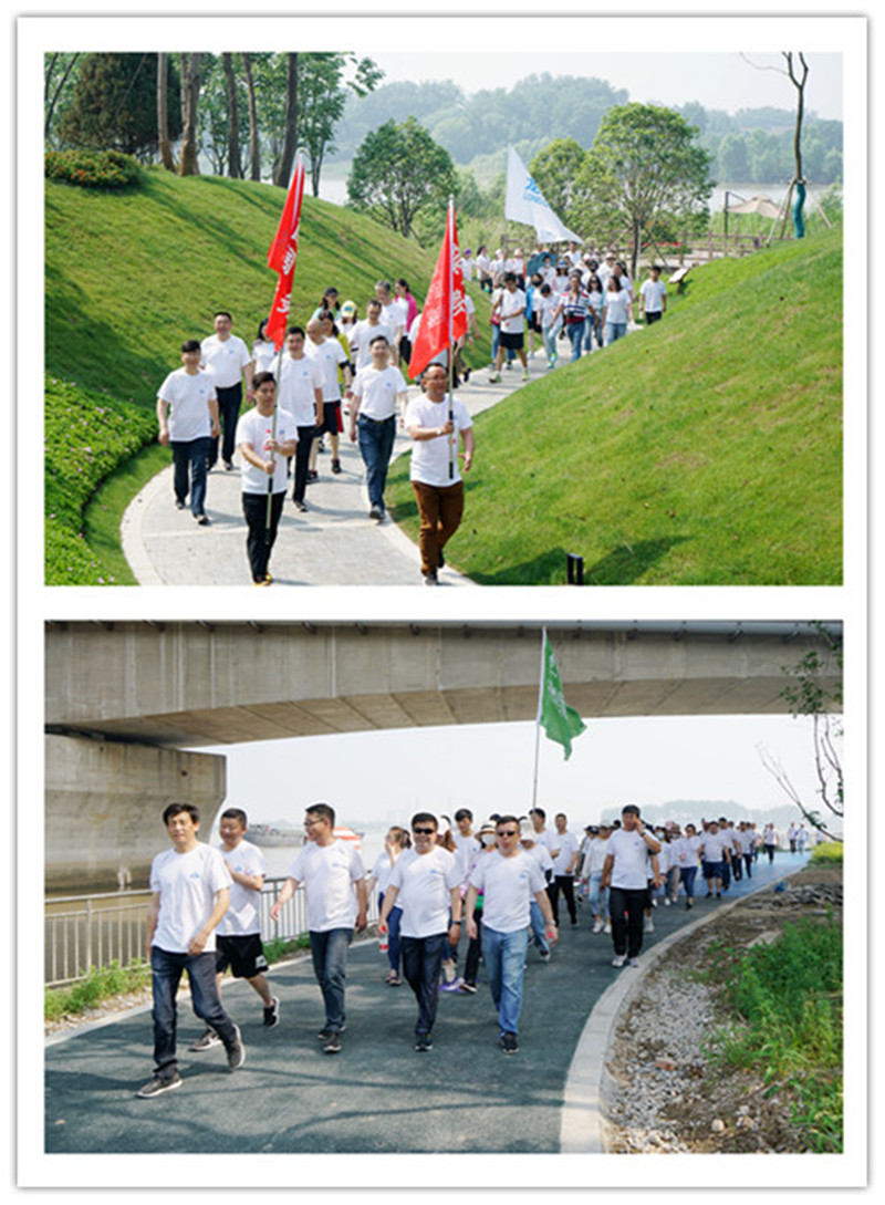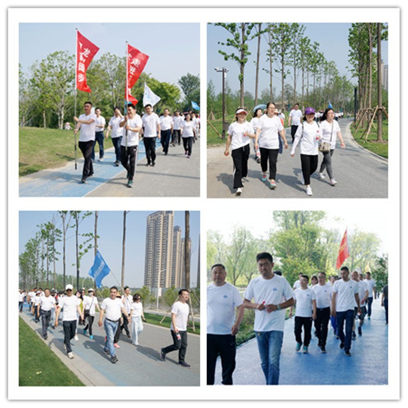 活動(dòng)開始,首先,總經(jīng)理王智勇代表公司致詞,做了熱情洋溢的動(dòng)員,接著,參加活動(dòng)的各位領(lǐng)導(dǎo)為公司本部及四個(gè)子公司共五支代表隊(duì)進(jìn)行了集中授旗,最后,隨著公司執(zhí)行董事張勇的隆重宣布和發(fā)令槍聲的響起,健步走活動(dòng)正式開始。大家從風(fēng)景如畫的三河六岸公園音樂噴泉廣場(chǎng)出發(fā),沿著步道,一直走到今年新建成的南水北調(diào)源頭公園氣膜館。大家一個(gè)個(gè)精神飽滿,熱情高漲,意氣風(fēng)發(fā),邊走邊交流,細(xì)數(shù)著公司過去及現(xiàn)在發(fā)展歷程中的點(diǎn)點(diǎn)滴滴,同時(shí),欣賞著公園美景,感受著健步走帶來的歡樂,大家一路走,一路笑,各種喜悅寫滿了笑臉。