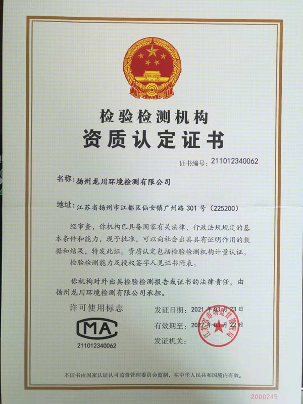 計量認證是揚州龍川環境檢測有限公司進行資質申報、拓寬業務的準入證。下一步,公司將進一步加強管理,不斷提高業務能力和管理水平,繼續推進其環境領域的資質申報工作,為公司高質量可持續發展提供有力的技術支撐