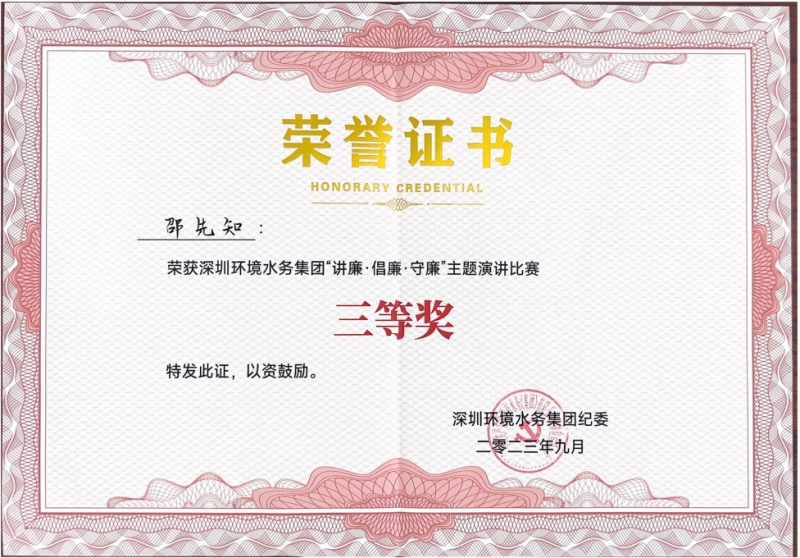 為進一步加強公司廉潔文化建設,教育引導廣大黨員干部增強紀律規矩意識,揚州龍川水務建設有限公司積極響應環水集團開展的“講廉、倡廉、守廉”主題演講比賽活動,公司黨總支選派的黨員代表邵先知同志以一篇《廉潔如水·點滴為民》通過層層選拔后進入決賽,最終喜獲三等獎的好成績。