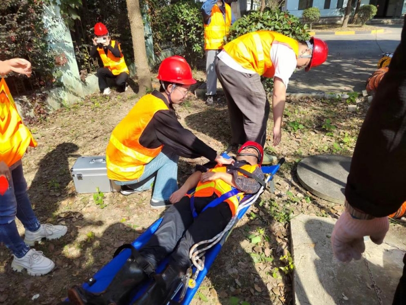 現場后勤保障組放置救援三腳架、使用鼓風機進行通風作業,同時拉警戒線,疏散人員;搶修組穿戴救援繩、佩戴呼吸器、攜帶救援繩下井救人;救援組抬擔架、挎醫藥箱在閥門井口等待......現場演練緊張有序,隨著傷員被救出閥門井,放上擔架、轉移至通風空曠處,展開現場救護工作,直至救護人員到達,此次演練活動取得圓滿成功。