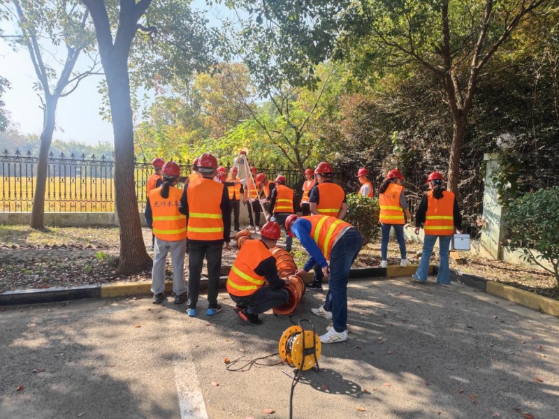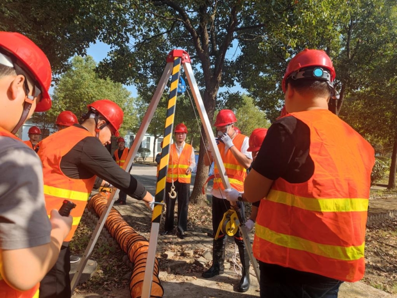 為進一步做好有限空間安全工作,檢驗有限空間作業中應急預案和應急處置措施的有效性和可行性,以此提高事故應急處理的能力和效果,揚州市惠民區域供水投資有限公司于10月31日上午在丁伙增壓泵站開展了“2023年有限空間搶險應急演練”。此次演練活動共設有指揮組、作業組、聯絡組、搶險組、救援組、后勤保障組、觀摩組七個小組,共計40余人參加。