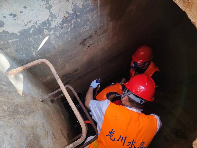 演練內容為模擬有限空間事故發生在丁伙泵站進水閥門井現場,由于人員違章操作,在未經審批的情況下,下井作業暈倒,情況十分危急,指揮組命令立即啟動有限空間應急搶修預案,各小組人員立即趕往現場進行救援。