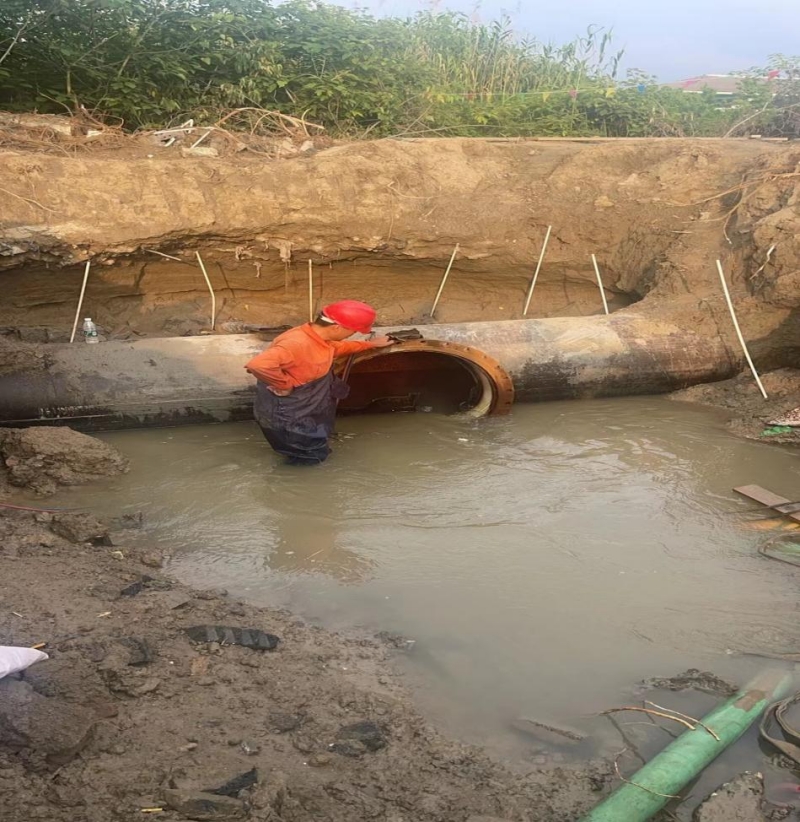 龍泉建設工程公司攻堅克難完成區域供水DN1200管道碰接