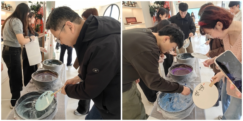 在思想的遠航之后,活動轉入非遺文化體驗環節。青年員工們共同感受流淌在指尖的千年文脈,在專業老師的指導下體驗漆扇制作技藝。在準備扇面、滴入漆料等一道道工序中,大家不僅領略了傳統工藝的精妙絕倫,更深刻體會到中華優秀傳統文化的深厚底蘊。活動現場歡聲笑語不斷,一件件獨具匠心的漆扇作品在巧手中誕生,展現出青年一代對傳統文化的創新理解。